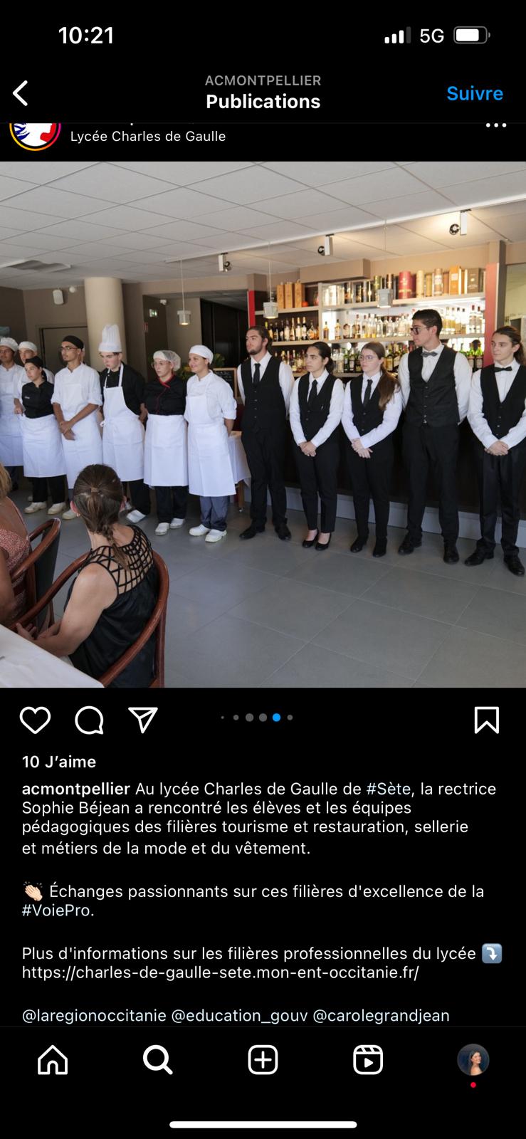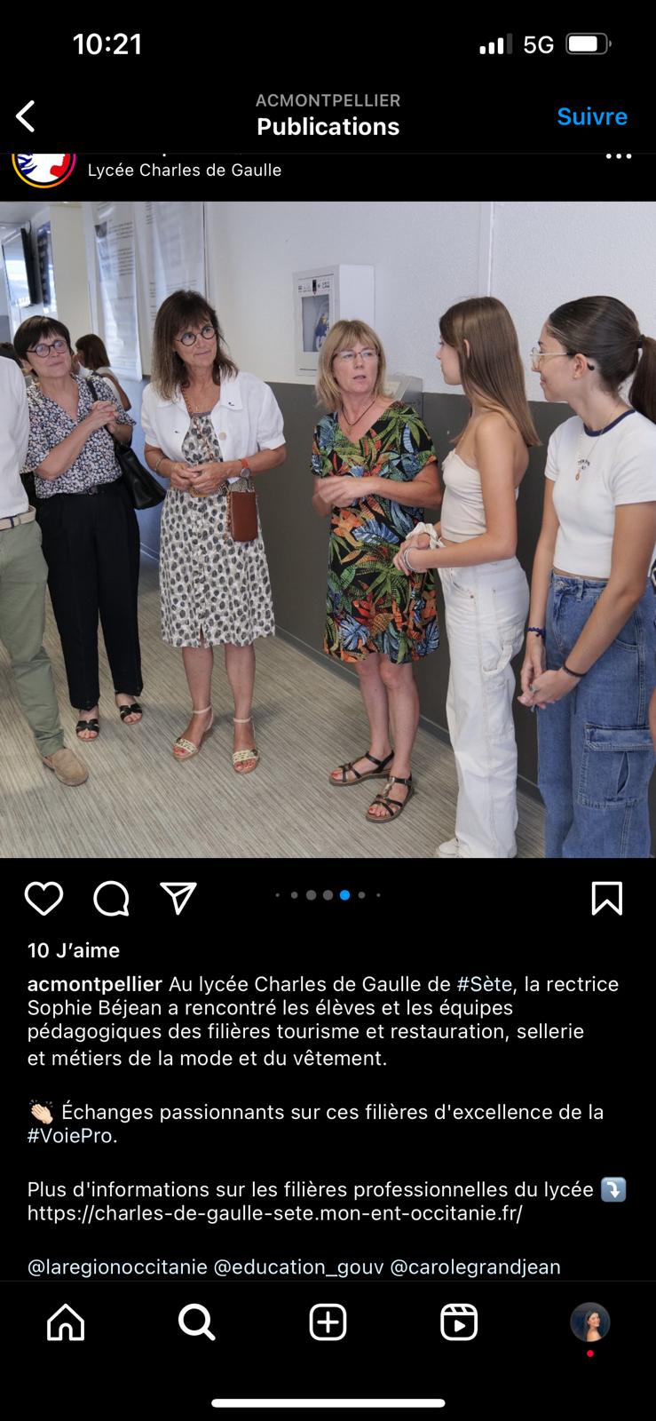 Jeudi 07 septembre Madame la rectrice de la région académique Occitanie, rectrice de l'académie de Montpellier, chancelière des universités a visité longuement notre établissement, rencontré les professeurs des différentes filières professionnelles et échangé avec les élèves.